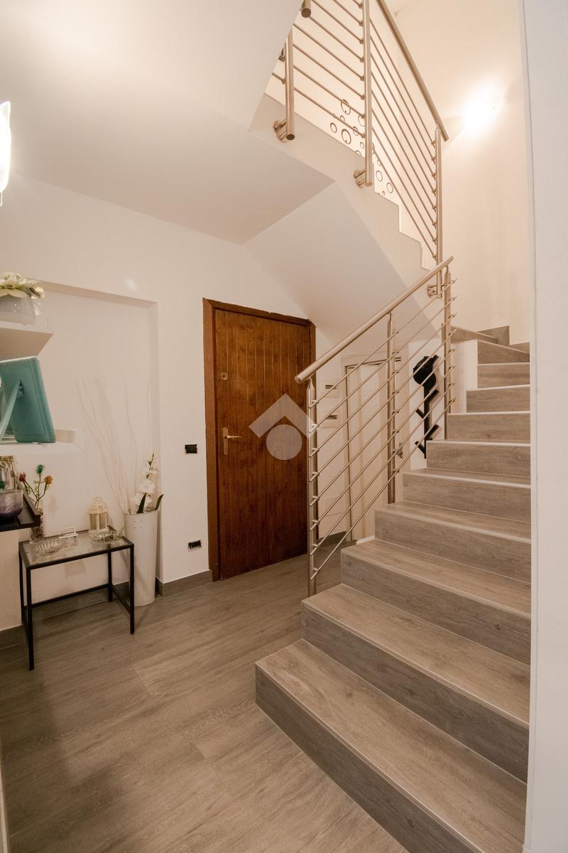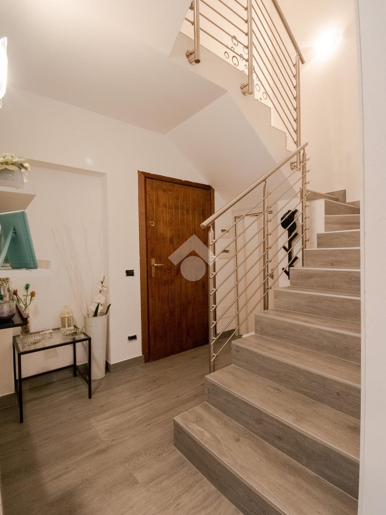 Al piano terra troviamo un accogliente soggiorno open space con cucina moderna, bagno ed accesso al garage doppio attualmente adibito a taverna che offre versatilità d’uso perfetta anche come sala hobby o palestra privata.