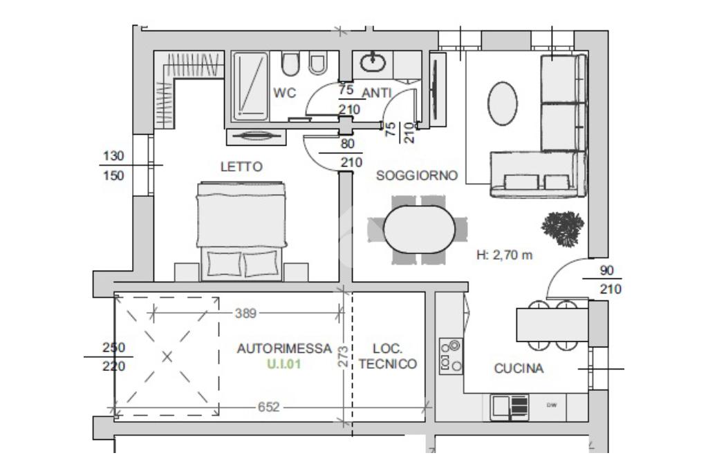 L'immobile è composto da ingresso su soggiorno con cucina a vista, antibagno e bagno, camera matrimoniale.