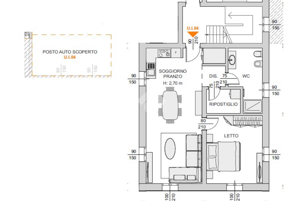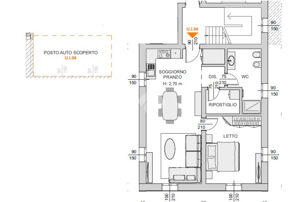 L'immobile è composto da ingresso su soggiorno con cucina a vista, disimegno, bagno, ripostiglio e camera matrimoniale.